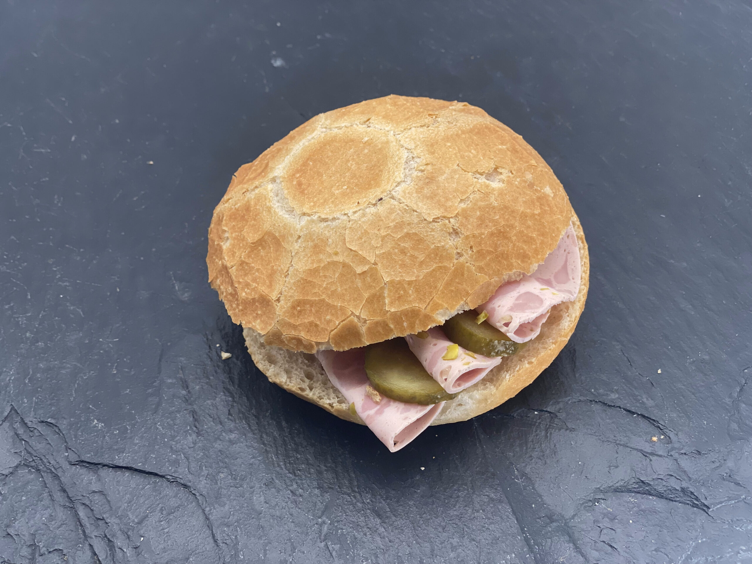 Kaisersemmel mit Bierschinken und Essiggurkerl